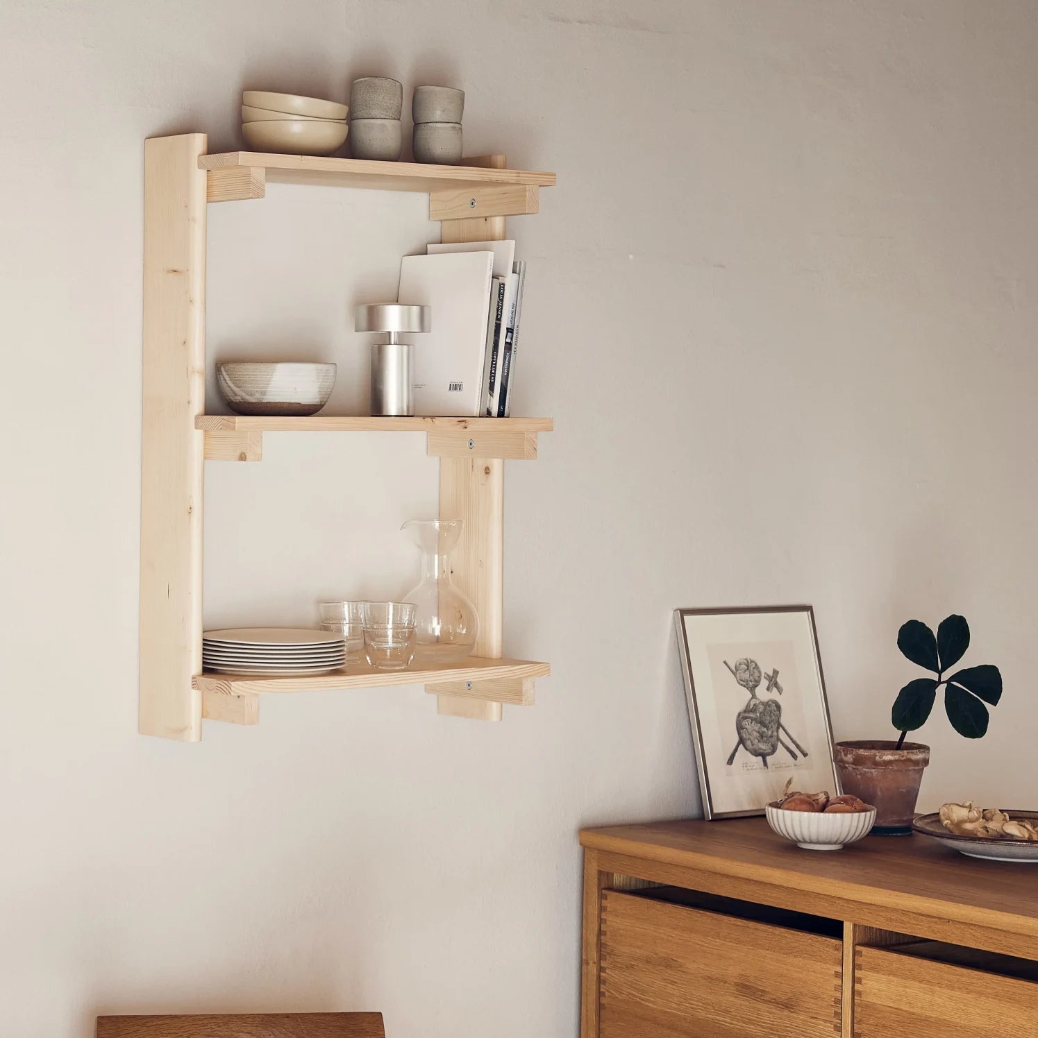 Practical storage with natural warmth.