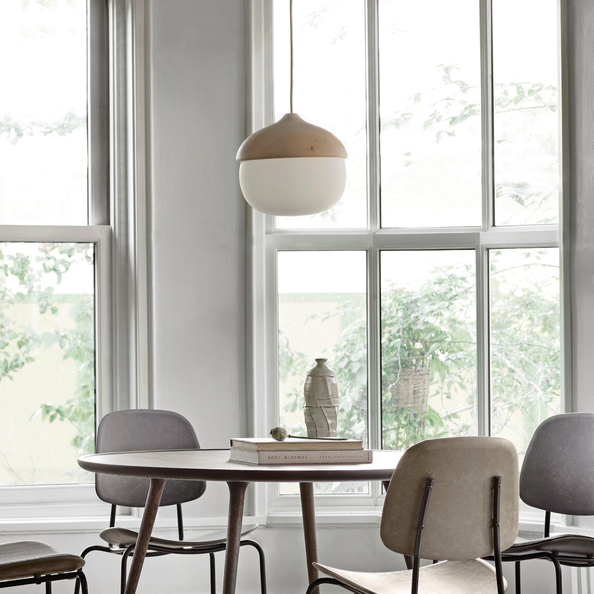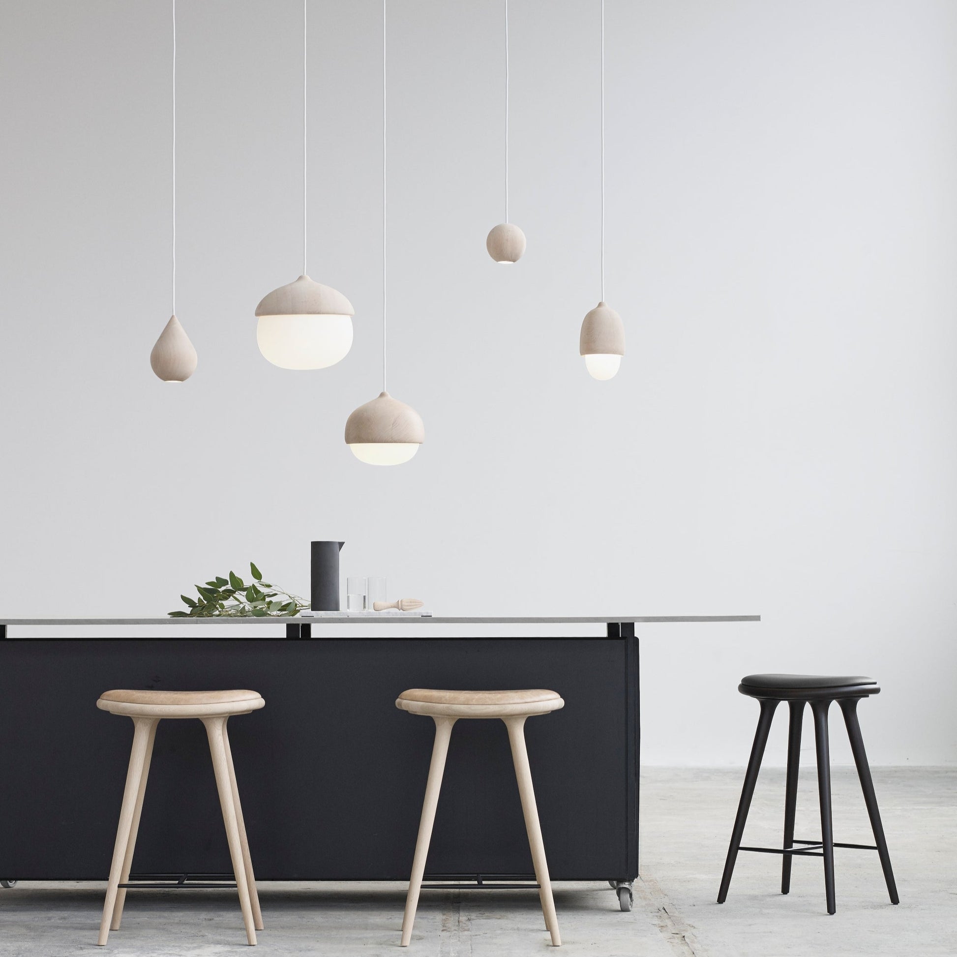 Designed by Finnish designer Maija Puoskari, the Mater Terho Lamp takes inspiration from acorns — simple, natural forms that bring a sense of calm and balance. Crafted from linden wood and opal glass, it creates a warm, ambient glow while remaining as contemporary as it is timeless.
